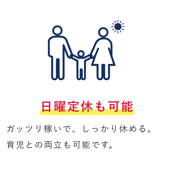 | 勤務時間 | 隔日勤務(月11~13回乗務):1日勤務して1日休みの勤務シフト 実働15時間/別途休憩3時間 ※研修期間中:実働7時間30分 週平均40時間 1ヶ月単位変形労働時間制 ※隔日勤務とは? 月間の勤務日数は11~13日で、明休と公休を含めると休み18~20日あります。 1日3時間以上の休憩時間を、自分の好きな時間帯に取得することができるなど、 あなたのペースに合わせて活躍できます。 |