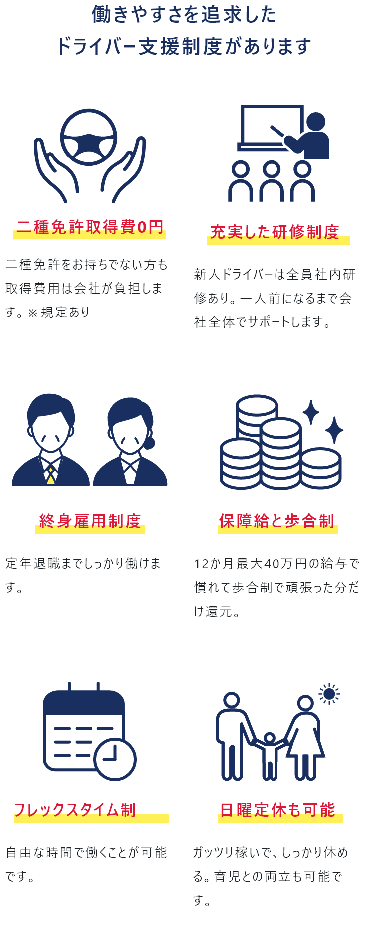 働きやすさを追求したドライバー支援制度があります