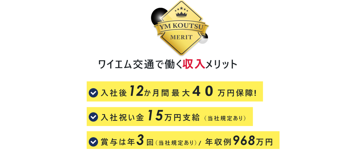 月給:40万円以上 ◆入社後1年間は給与保証あり! 乗務開始~3か月間:月給40万円 4~12か月目:月給35万円 ※2月1日~4月30日迄の応募者が対象※規定有 ◆給与保証額を超える売上を確保できた場合は、その分を上乗せした給与を支給 平均月給57万円★年収800万円を超える社員も在籍 ◆入社後13ヶ月以降 最低保証金額(基本給) ┗月給190,575円+歩合+手当 ◆配属前の研修期間中(最長3ヶ月)は日給1万円+交通費支給 モデル年収 968万円/未経験入社6年目(月給19万575円+歩合+賞与3回) 790万円/未経験入社2年目(月給19万575円+歩合+賞与3回) 564万円/入社1年目の平均年収((月給40万円×3ヶ月+月給35万円×9ヶ月)+歩合+賞与3回) 【固定給+歩合給】で頑張りをしっかり評価! 未経験から入社した先輩も、年収700万円を実現しています! 『高給料の理由』 他社に比べ、売上は乗務開始から数年後には大きくリードしています。 一人一人の売上が高い=給与額が大きいことが高い業績に繋がっています。 <「日経MJ」2011.11.16発行掲載データより> |